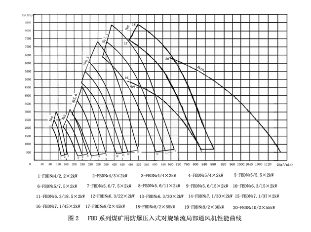 我公司生產的FBD系列礦用防爆壓入式對旋軸流局部通風機,采用了這種技術,可使風機的運行噪聲不超過83dB(A),全壓效率達到88%,是一種理想的對旋式軸流通風機。