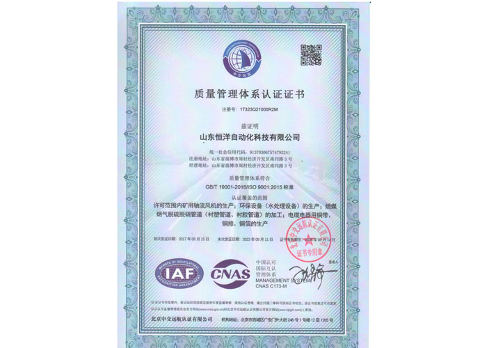 質(zhì)量管理體系認(rèn)證證書(shū)